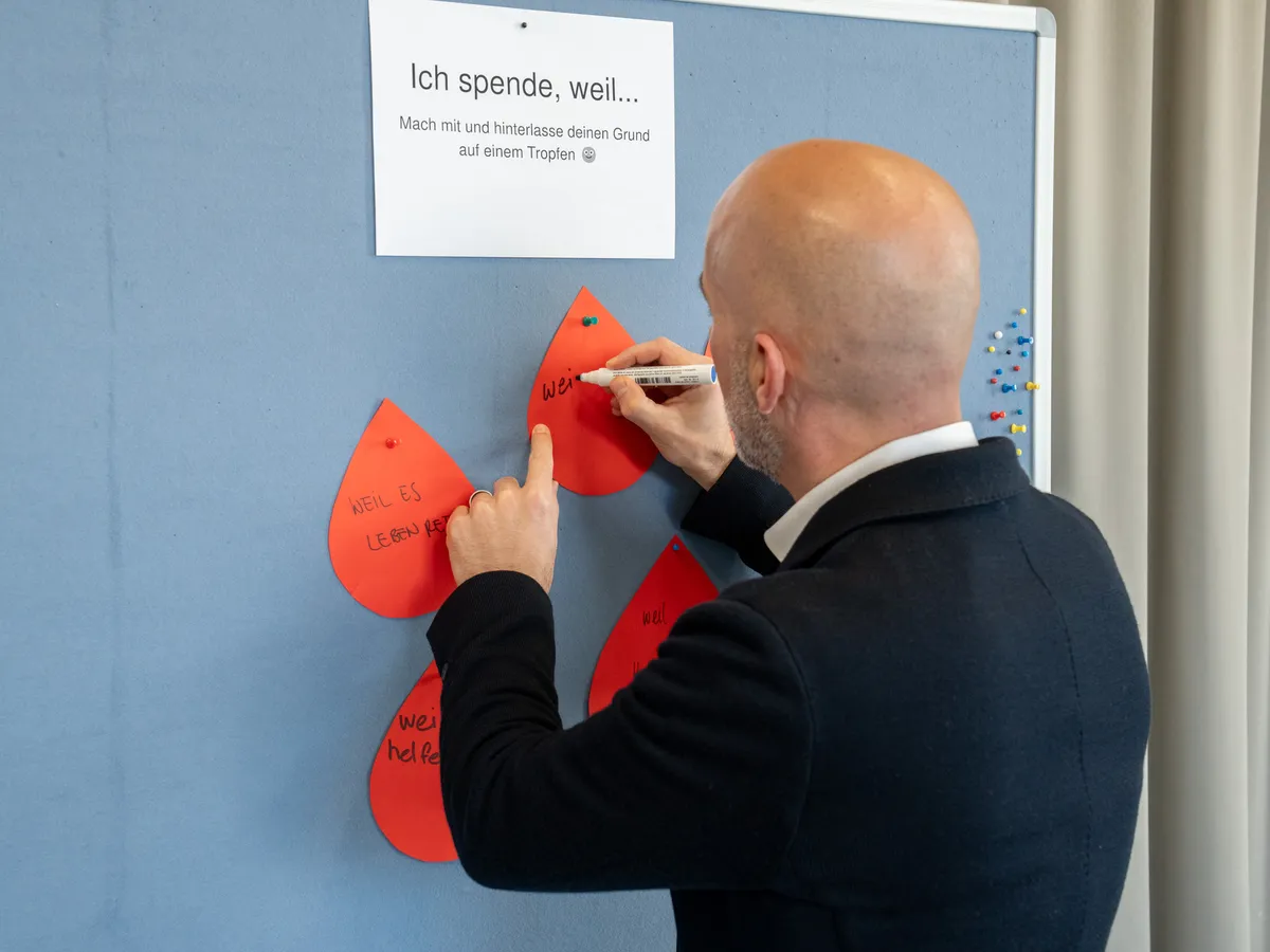 Die eigentliche Blutspende dauert rund 10 Minuten. Bitte planen Sie zusätzlich etwas Zeit für Erholung und eine kleine Stärkung ein.