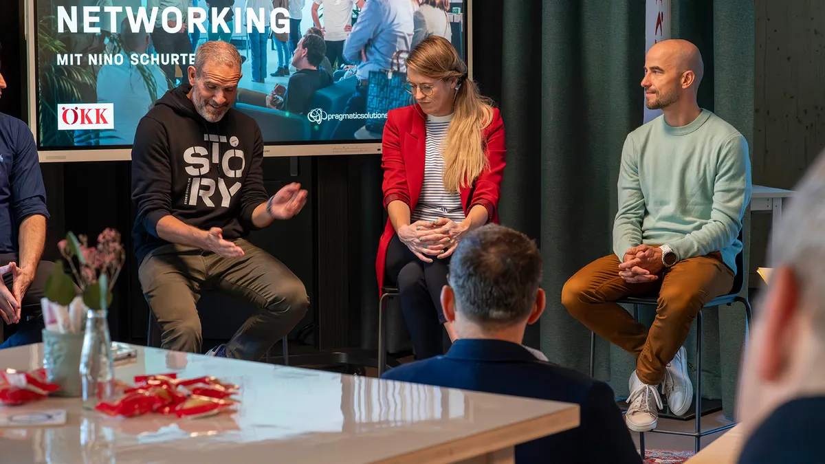 Der erste ÖKK Networking Event im neuen Coworking STORY Thusis war inspirierend und einfach unkompliziert. Unter dem Motto «KMU-Führung trifft auf Spitzensport» diskutierte Mountainbike-Star Nino Schurter mit der Unternehmerin und Bündner Grossrätin Luana Bergamin, Verwaltungsrat der BR Event AG Lorenz Luginbühl sowie dem STORY Thusis Geschäftsführer Martin Gerber über die Themen Mut, Fokus und Fehler.