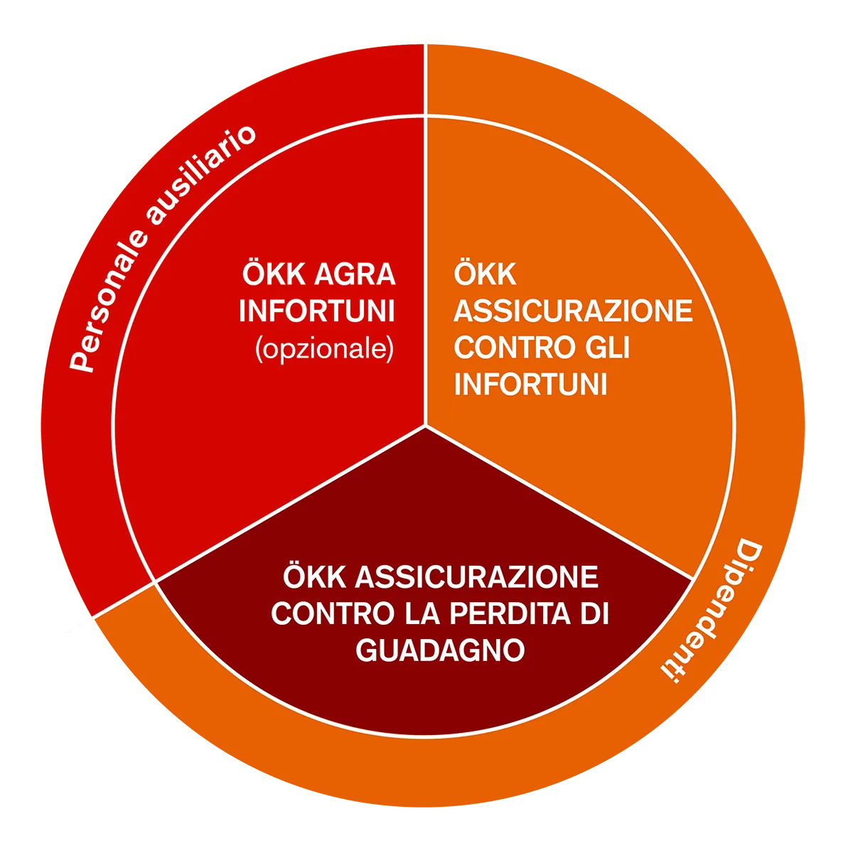 ÖKK ASSICURAZIONE AGRICOLTORI assicura lei e i suoi dipendenti contro i seguenti rischi: infortuni sul lavoro e durante il tempo libero, malattie professionali e perdita di guadagno.